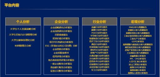 原点参数-分析报告撰写技能实训平台内置数十种撰写训练分析报告,通过对个人、企业、行业、产业的分析撰写报告训练,培养学生分析研究能力、撰写报告能力、系统性商业思维能力,从而提升学生就业竞争力,并拓展学生未来就业机会的选择。