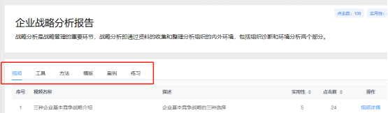 学生通过对某一种报告的视频、工具、方法、模板、案例等基础知识的学习,再结合练习模块,可快速了解某一种报告撰写的思路与方法。