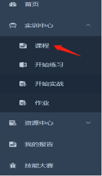 实训平台包含多种报告课程与练习,学生通过账号密码登录平台。选择屏幕左边“实训中心”菜单下的“课程”即可开始练习。