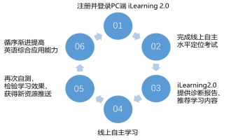 iLearning2.0的使用可以帮助初学者高效的利用资源,引导式自主学习,注册登录账号后,用户会首次完成线上自主水平定位考试,通过测试系统会提供诊断报告和推荐相关水平的学习内容,就达到个性化定制学习计划。线上自主学习完成后,会再次进行自测,检验学习效果,并获得新的资源推送,这个过程有点像是升级打怪,给予学生一定的自驱力,帮助学生循序渐进的提高英语综合应用能力。整个过程的一个闭环也赋予了iLearning2.0排他性的功能。