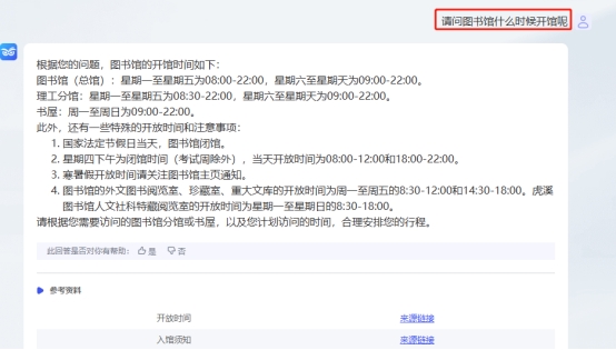 示例一:请问图书馆什么时候开馆呢