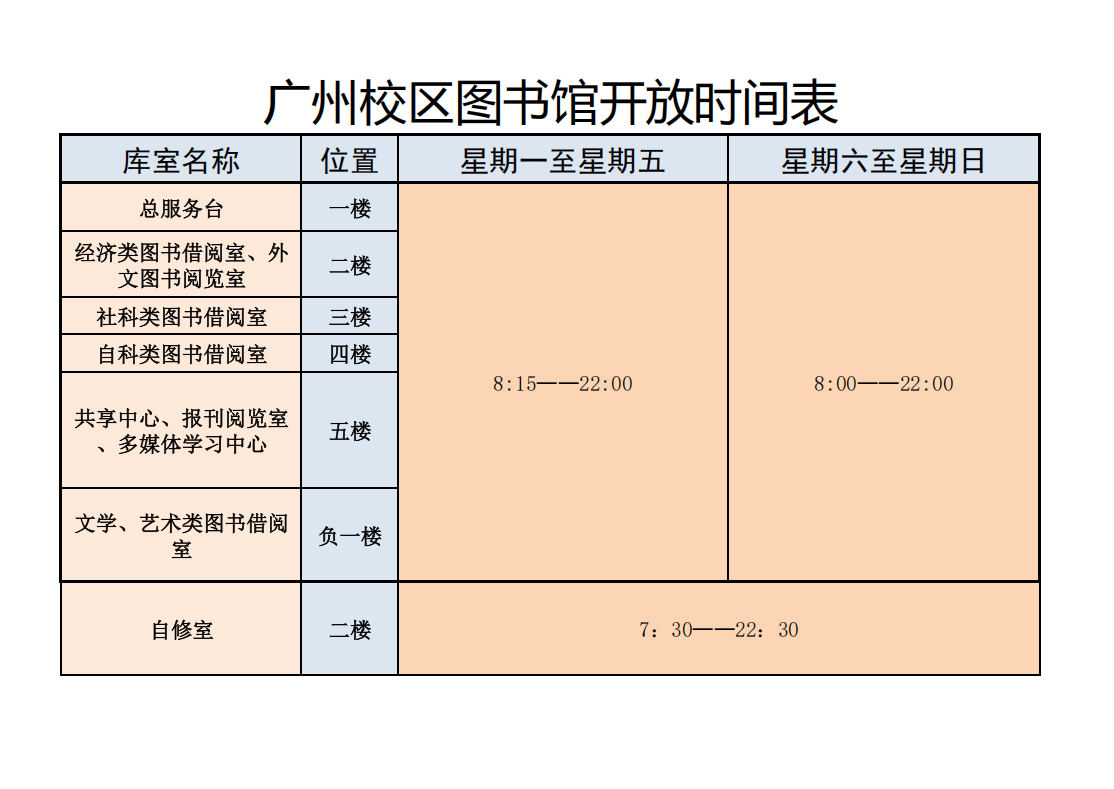 图书馆开放时间